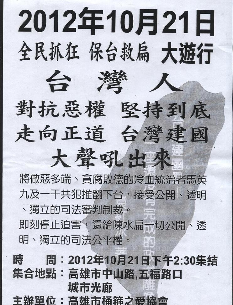 十月十七日是台灣文化日,卻看不到馬政府的文建會有什麼特別的文化活動。馬英九向來喜歡利用台灣來裝飾點綴自己,過去將蔣渭水的照片掛在國民黨中央黨部前,或是拉攏二二八及白色恐怖受害者家屬來偽裝愛台灣。現在台灣文化日卻是馬上就消失不見。
