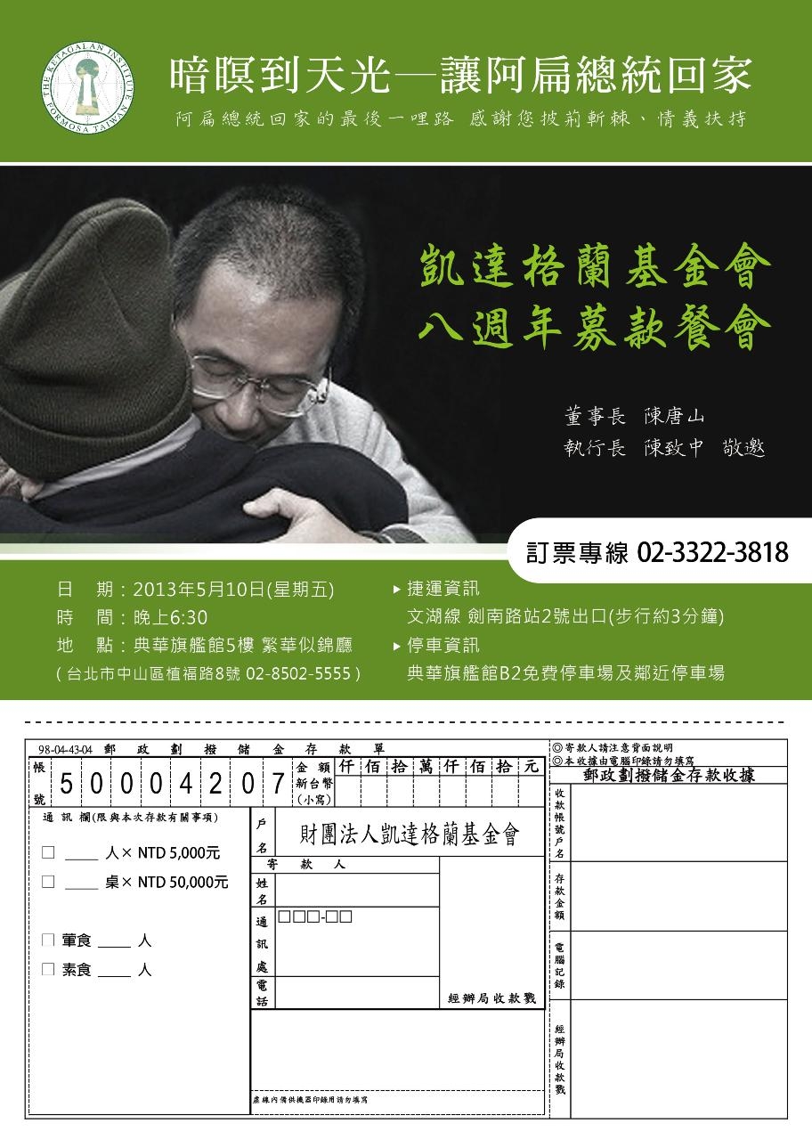 凱達格蘭基金會 八週年募款餐會:暗暝到天光--讓阿扁總統回家