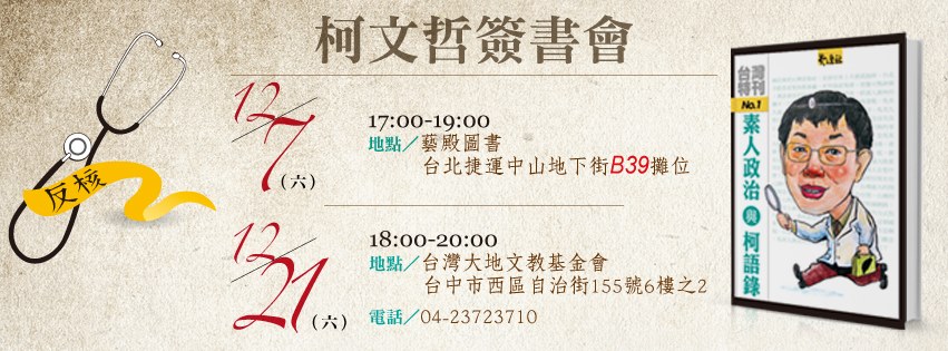 【活動預告】12/21 柯文哲《素人政治與柯語錄》新書發表會